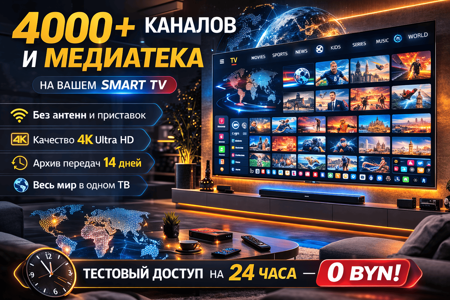 Мировое ТВ 2026: 4000+ каналов и Медиатека на вашем Smart TV